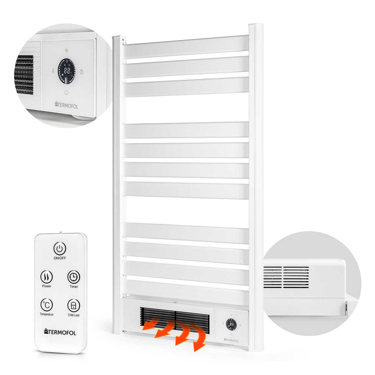 Grzejnik łazienkowy Termofol to idealne rozwiązanie do Twojej łazienki, które zapewni Ci komfort  i wygodę. Nowoczesny design i biały kolor sprawia, że grzejnik prezentuje się stylowo i elegancko. Wbudowana nagrzewnica powoduje ultraszybkie nagrzewanie łazienki. Możliwość sterowania pilotem lub przez aplikację sprawia, że ustawianie żądanej temperatury nigdy nie było tak wygodne.