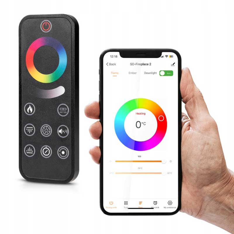 Kominek z serii HM został udekorowany ręcznie polanami z żywicy oraz kolorowymi kryształami, a całość jest osłonięta przez szyby, co dodaje mu elegancji. Łatwe sterowanie jest możliwe dzięki dotykowemu pilotowi lub panelowi sterowania. Ponadto, urządzenie zostało wyposażone w dwustopniowy system grzewczy, który skutecznie podnosi temperaturę pomieszczenia w chłodniejsze dni, zapewniając dodatkowe ciepło i komfort.