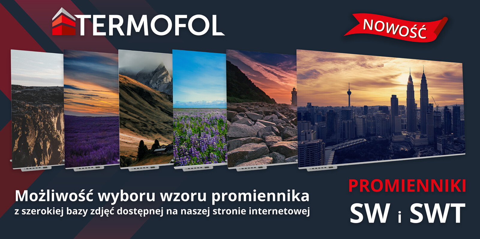 Wychodząc naprzeciw wymaganiom klientów, wprowadziliśmy do swojej oferty promienniki serii SW oraz SWT pełniące funkcję obrazów. Klient ma możliwość wyboru wzoru promiennika z szerokiej bazy zdjęć dostępnej na naszej stronie internetowej. Ponadto istnieje opcja przesłania nam indywidualnych zdjęć, które zostaną umieszczone na promienniku. Oferta skierowana jest do osób, które oprócz ciepła cenią sobie niebanalny design i własny wystrój wnętrz. Czas realizacji zamówienia to około dwa tygodnie.